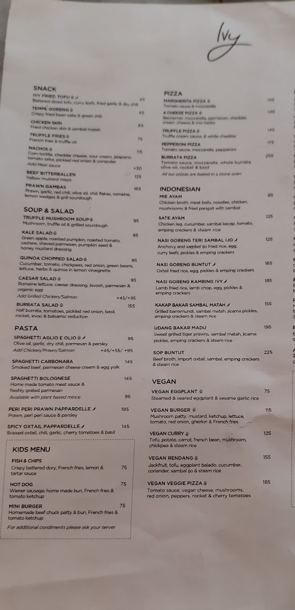 Welcome to Ivy - Kota Jakarta Selatan, an exceptional culinary gem nestled in the upscale neighborhood of Dharmawangsa. This distinctive eatery offers a thoughtfully curated menu, emphasizing both plant-based and hearty main courses. Indulge in their signature dishes like the Impossible Pizza, bursting with flavors from homemade tomato sauce and herbs, or try the Classic Impossible Burger, boasting a perfectly seasoned vegan patty.